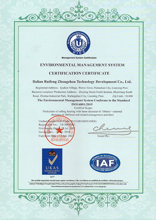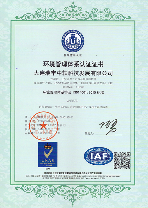 大連瑞豐中軸科技發(fā)展有限公司已通過IS09001質(zhì)量體系認(rèn)證,BSOHSAS 18001:2007職業(yè)健康 管理體系認(rèn)證,IS014001:2004環(huán)境管理體系認(rèn)證。